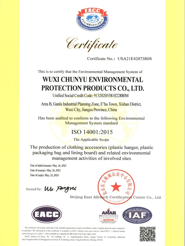 純宇環(huán)保-環(huán)境管理體系認(rèn)證證書英文